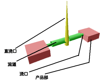 成形品是由流入融化樹(shù)脂的澆口、導(dǎo)入模槽的流道與產(chǎn)品部份所構(gòu)成。由于一次的成形作業(yè)只能作出一個(gè)產(chǎn)品,因此效率不高。若能利用流道連結(jié)數(shù)個(gè)模槽,就可同時(shí)成形數(shù)個(gè)產(chǎn)品。此時(shí),當(dāng)各模槽的流道長(zhǎng)度不同時(shí),就無(wú)法同時(shí)填充樹(shù)脂,而且大部分的模槽尺寸、外觀、物性皆不同,因此通常都會(huì)將流道設(shè)計(jì)成相同長(zhǎng)度。